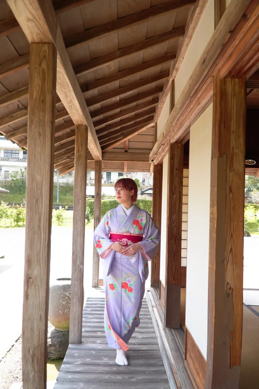 レトロで凛としたイメージは、約800年の歴史が息づく入来麓の町並みにぴったり♪ 整然とした玉石垣の道や武家屋敷を着物姿で巡れば、タイムスリップ気分も味わえます。レンタルから着付けまでセットになっているので、特別な準備は不要。7〜9月頃までは浴衣レンタルも可能です。